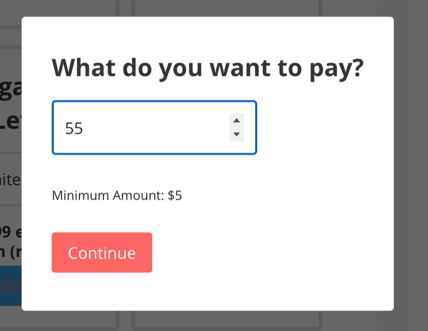 3. On the subscribe card, the user can click on the button and enter their donation amount